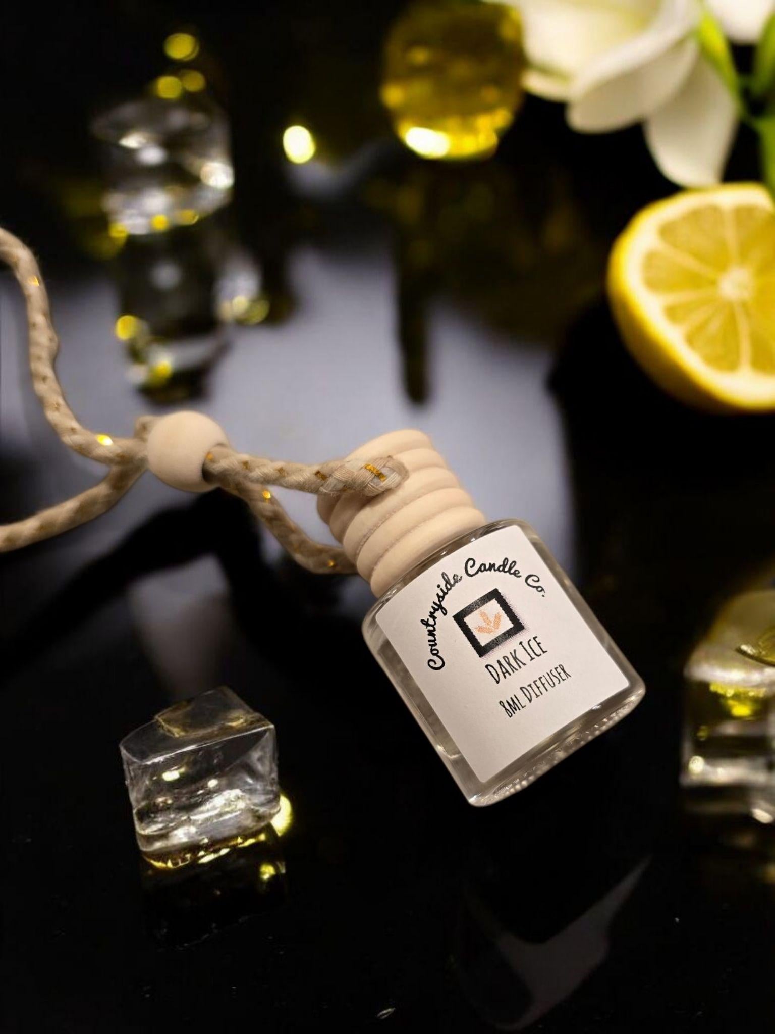 Add a cozy touch to your car with Countryside Candle Co.'s 8ml Dark Ice Car diffuser. with notes of Ambergris, lily petals lemon and musk. This scent is inspired from "Black Ice."